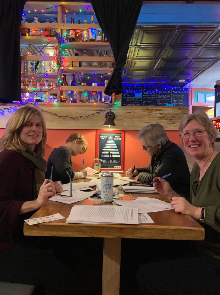 We gathered at the Marquis in Middlebury, watched a strategy video, heard from Ann @ Lean Left, and then got to work drinking beer and writing 350 personal letters to unregistered voters in North Carolina. AND IT WAS FUN.